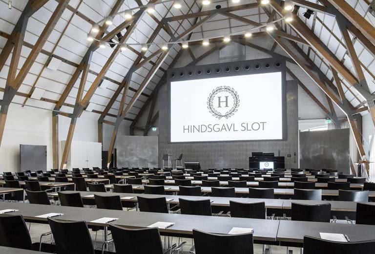 I den gamle lade ligger Tranesalen, der er Hindsgavl Slots største konferencesal. Med sin størrelse på 360m2, 15 m. til loftet og fritlagt loftkonstruktion er lokalet som skabt til gode oplevelser.
