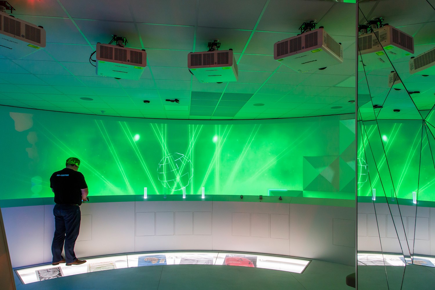 Al AV udstyr i hele bygningen er forbundet til et samlet AV netværk og hele udstillingen styres via et Crestron betjeningssystem. Hele udstillingen kan tændes og slukkes med et enkelt tryk på et Crestron touchpanel i billetsalget. På dette touchpanel kan der også tilgås en servicelog, der viser eventuelle fejlmeddelelser.