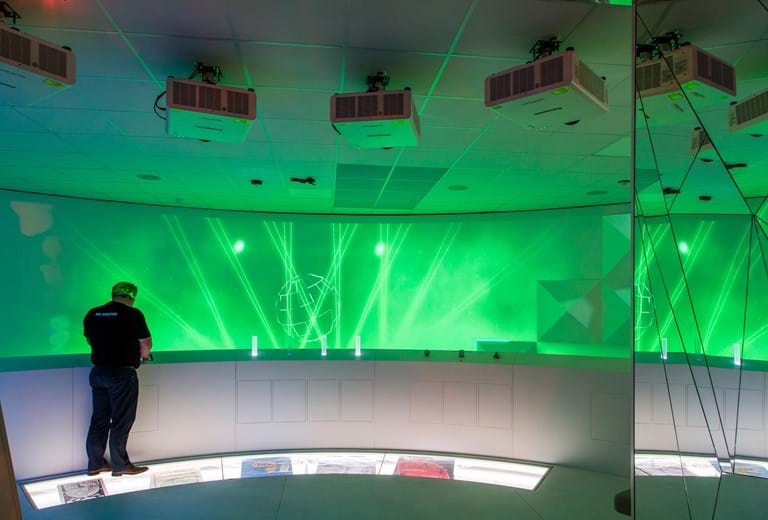 ”Da der skulle vælges projektorer til udstillingen, faldt valget meget hurtigt på Panasonic laser projektorer. Laser projektorerne er meget driftssikre, vedligeholdelsesfrie og uden traditionel lampe, der skal skiftes”.