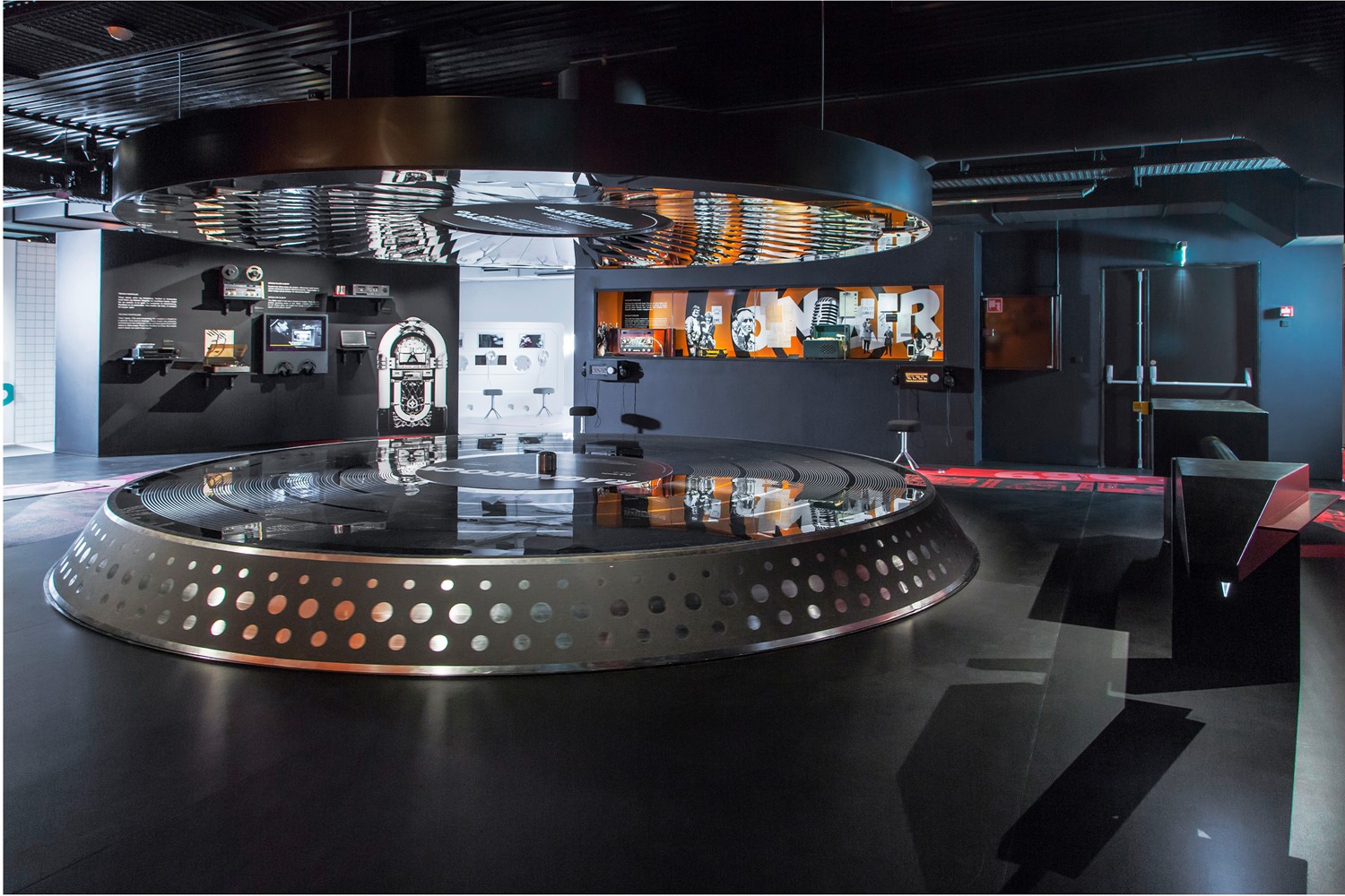 Et andet interessant element i udstillingen er en stor roterende pladespiller, hvorpå gæsten kan ligge og lytte til et stykke musik afspillet i nedsat hastighed. Gæsten kigger op i loftet, hvorpå der bliver vist et billede ved hjælp af bagprojektion.