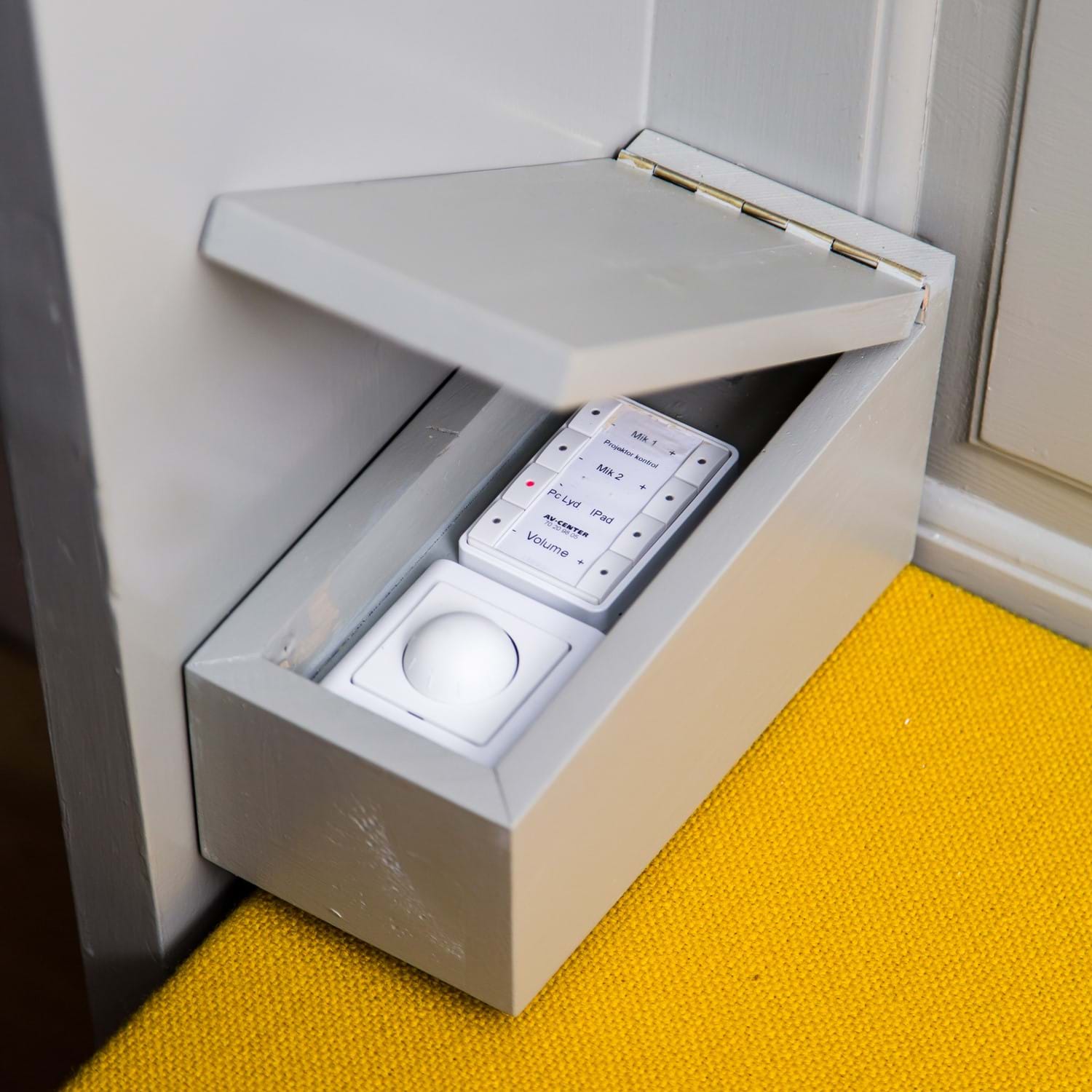 For at give præsten mulighed for diskret at tænde og slukke for headset mikrofonen, er der på alteret og på prædikestolen placeret et simpelt panel med blot to knapper.