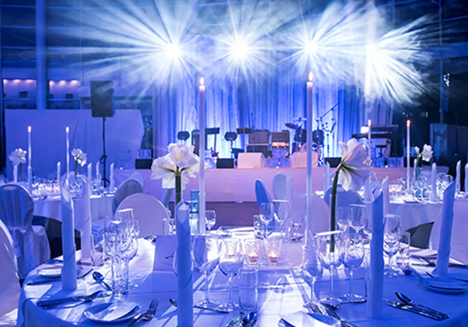 Sammen med et flot dækket bord og lokalets udsmykning, er den rette lyssætning med til at skabe rammerne om den perfekte aften. Lys skaber stemninger, så lad lyset være en aktiv del af totaloplevelsen, hvor både væggene og bordene er kreativt belyst. Hvis de fysiske rammer er en messe- eller sportshal, vil en kreativ dekorationsbelysning være med til at skabe en hyggelig og imødekommende stemning. Vi tilbyder professionelle produkter til både dekorations-, scene- og lokalebelysning, og vores dygtige udlejningsteknikere programmerer lyssætningen, så den passer til eventets udtryk.