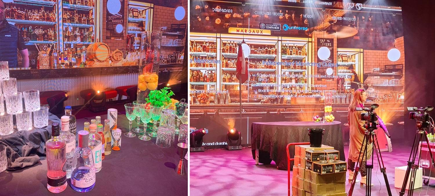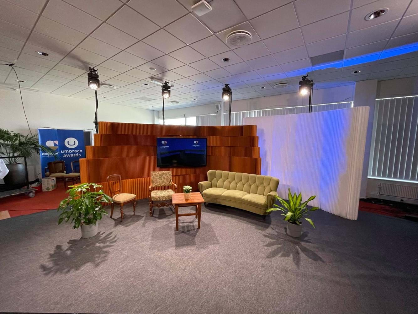 Bagvæggen kan opbygges som en stor LED skærm, som kan bruges til grafik eller visning af video og dermed give din produktion atmosfære og dybde, ligesom at folk kan deltage virtuelt via denne.